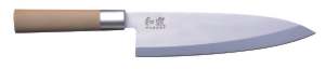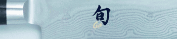 Shun professional cooking knives are made of newly developed rustfree Damascene steel - 32 layers each-, the inner part is made of Hitachi V-Gold Steel.This steel is extremely corrosion-resistant, very hard (62 % HRC, 1,0 % hydrocarbon, 1,5% cobalt) and this gives the blade its longlasting sharpness. The handle is made of fine Pakka-wood and ergonomical designed. The handle’s cross-section shows the traditional japanese “chestnut-form”, which lies comfortable in the hand.
